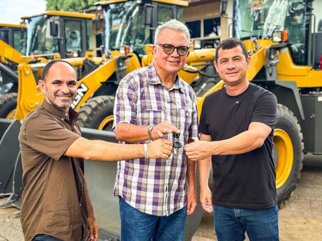Prefeito Jerry Correia recebe pá carregadeira adquirida com emenda do senador Sérgio Petecão