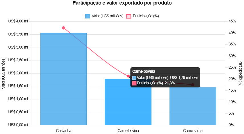 | Carne bovina | 21,3% | US$ 1,79 milhão |