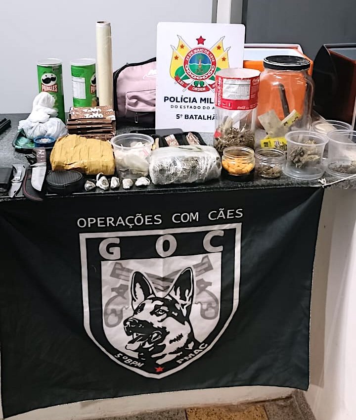 Durante a ação, policiais apreenderam cerca de 650 gramas de maconha e materiais usados no preparo da droga Uma ação da Polícia Militar do Acre