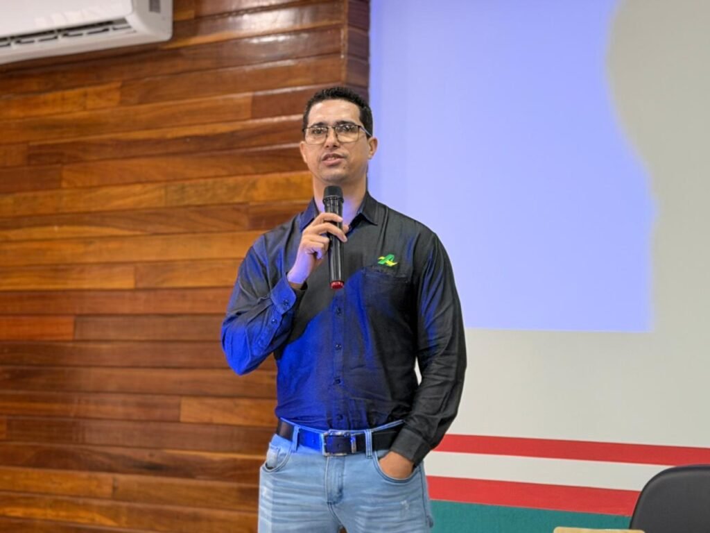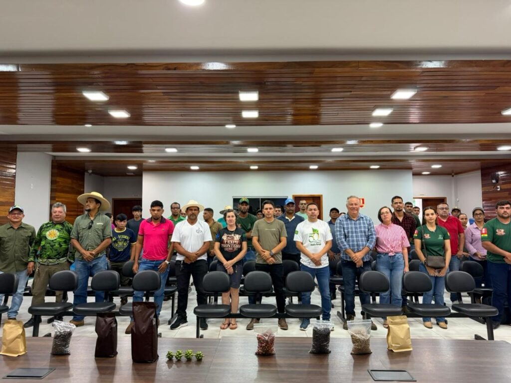 O evento teve início no auditório da Prefeitura, com uma programação teórica que reuniu produtores rurais e importantes representantes de instituições parceiras. Estiveram presentes Natanael, gerente do Banco da Amazônia; Silvano, presidente da Coocafé; Jeovane, secretário municipal de Agricultura; o prefeito Jerry Correia; o vice-prefeito Reginaldo Martins; Marcos Góes, representante da Emater; e Wilker, diretor da Seagri.