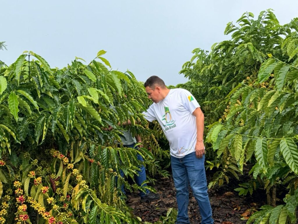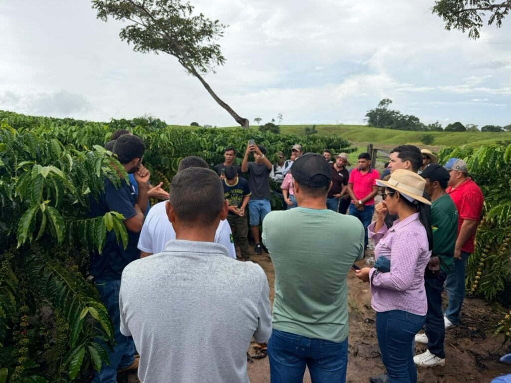 Após a etapa teórica, a programação seguiu com a parte prática, realizada no km 10, na propriedade do produtor Valderir Cunha. A atividade contou com o apoio do Sebrae, que disponibilizou um palestrante especialista na área para orientar os participantes sobre técnicas de cultivo e manejo do café.