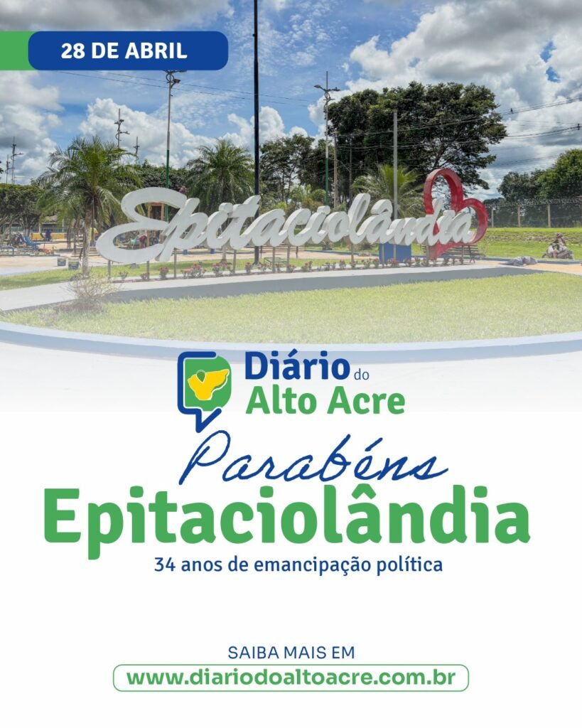 A cidade de Epitaciolândia, no Alto Acre, comemora nesta terça-feira (28) seus 34 anos de emancipação política com uma programação diversificada que reúne cidadania, cultura e grandes atrações musicais.