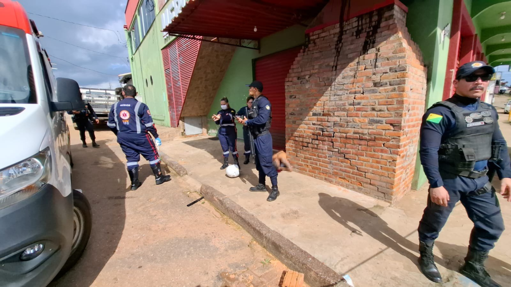 Policiais militares do 1º Batalhão isolaram a área para os trabalhos da perícia. Buscas foram realizadas na região, mas o suspeito não foi localizado.